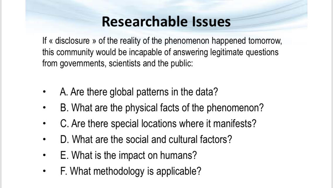Four of the slides shown during Lue Elizondo’s Mufon presentation talked about data, data collecting and data repositories: