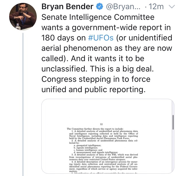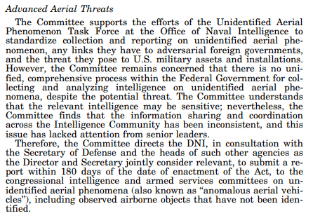 A bill written by Marco Rubio and others is now on the agenda for Fiscal Year 2021. It includes references to UAP and Advanced Aerial Threats. The work that TTSA and the current UAP program have done to brief politicians and others has worked. However, now the bill has to be approved and become an Act. Contrary to previous directions to contact lawmakers, the UFO community must now give these lawmakers space to work and get this bill approved. Otherwise the lawmakers and politicians may become overwhelmed and drop the effort. This bill represents years of hard work and the progress it can lead to if passed is very exciting.