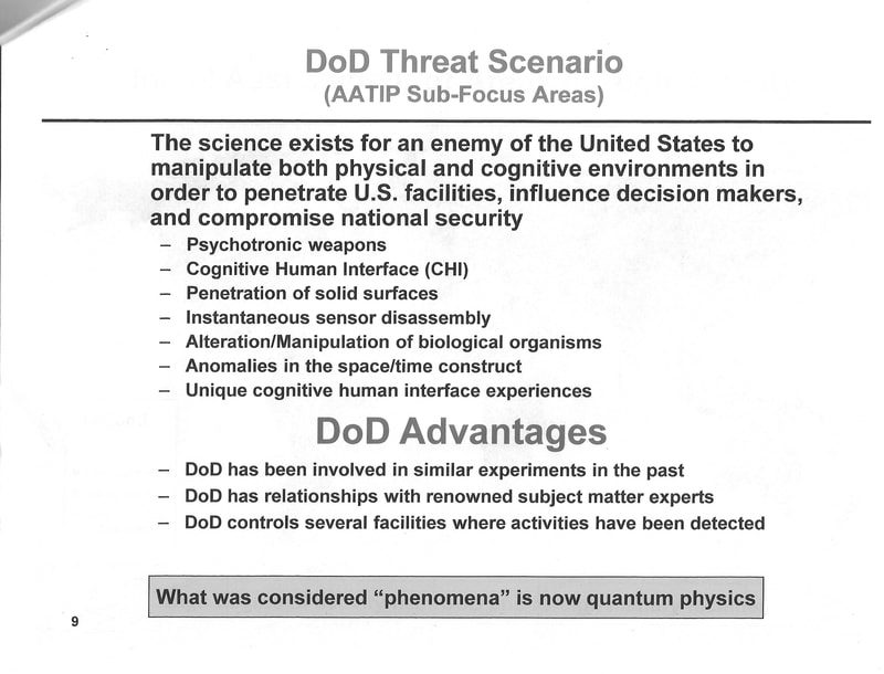 Included in the Chris Mellon website leak was a document detailing AATIP sub-focus areas which deal with biological effects among other topics: